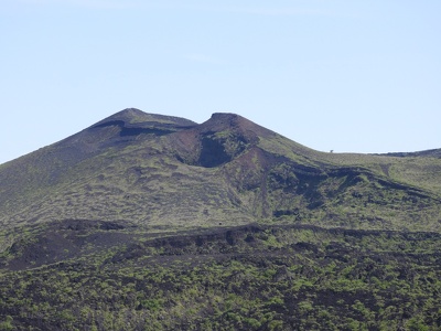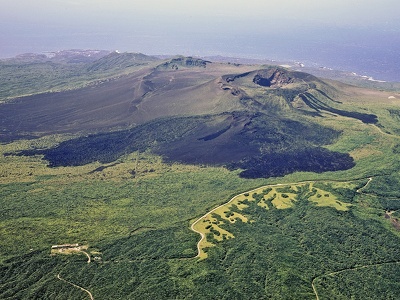 These craters are numbered from the south side. The hole in front of us is the second crater (B2 Crater), volcanic bombs and scoria that were ejected during the fissure eruption have accumulated around the crater. In the caldera in the front, are distributed of lava flows from the B craters fissure eruptions.