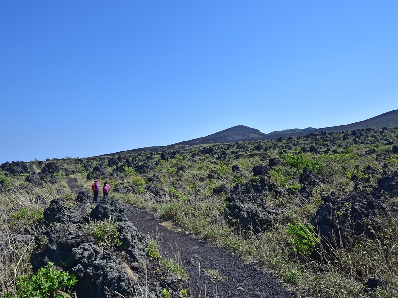 The B crater sequence fissure eruption erupted a large amount of scoriae and formed pyroclastic cones, and sent down lava flows named LB1, LB2 and LB3. LB1 erupted from the B3-4 crater on the northeastern flank of Mt. Mihara and flowed northeastward for 1.7 km, following the same path as the lava flow of the 1951 eruption.