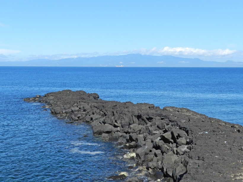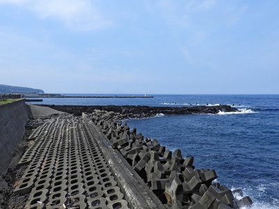 This lava flow, which juts out about 100m into the sea, is also a lava flow that flowed down and solidified, filling a small valley at that time. The soft earth and sand on either side of the valley were eventually scoured away by the waves, leaving only the hard lava as a headland. At the time of the eruption, the land stretched for about 100 m further than it does now.