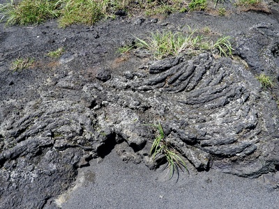 These lava formations are puffy, rounded or wrinkled like a rope. This surface morphology is characteristic of less viscous lava and is known as pahoehoe lava ("Pahoehoe" is a local Hawaiian word meaning "smooth").