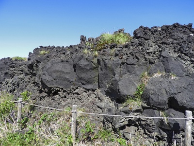 On November 19, 1986, the lava overflowing from the summit crater flowed down the slope of Mt. Mihara and covered the older trail and stopped. The tip of the lava flow is about 5 meters thick.