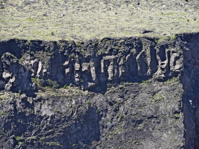 At the top of the crater wall is the lava from the 1986 eruption. The vertical cracks formed when the lava cooled and solidified, make this look like a line of pillars.
