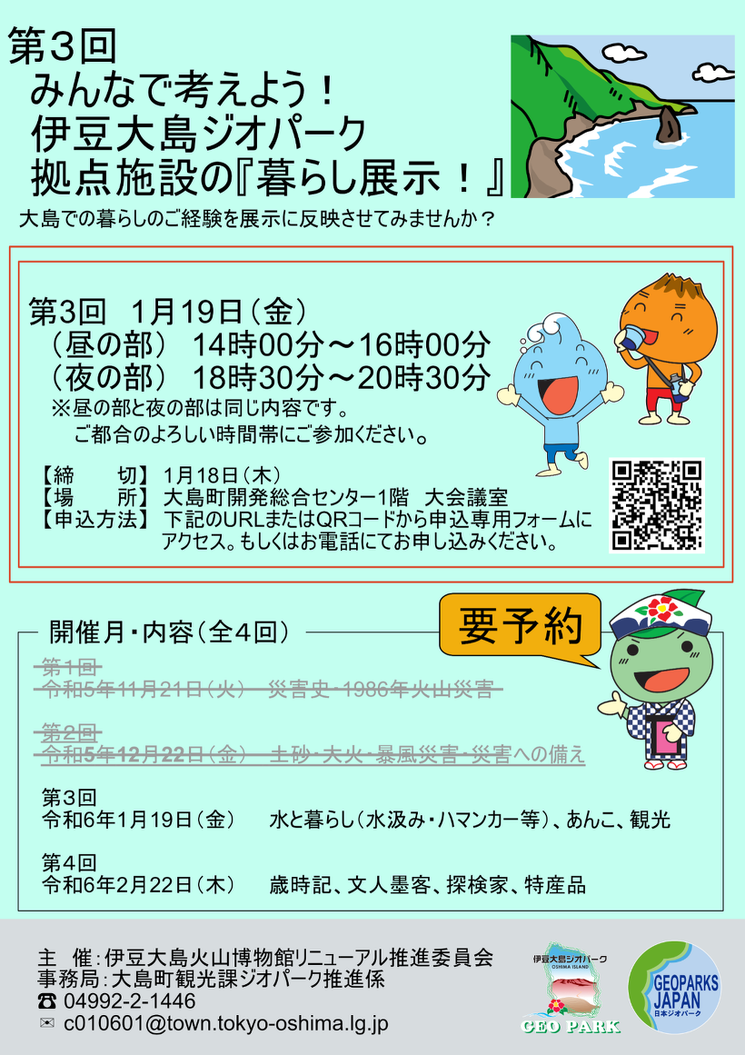 【1月19日】第3回みんなで考えよう!伊豆大島ジオパーク拠点施設の『暮らし展示!』