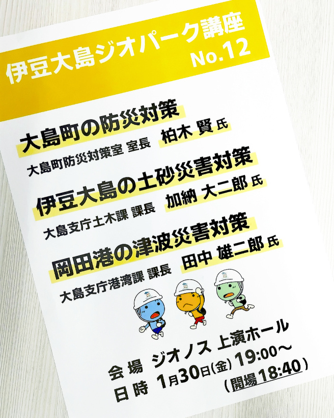 【1月30日】ジオパーク講座 No.12「大島町の防災対策/伊豆大島の土砂災害対策/岡田港の津波災害対策」