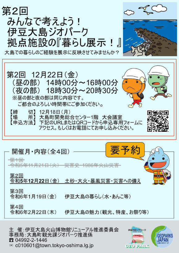 申込み先:伊豆大島火山博物館リニューアル推進委員会事務局(大島町観光課ジオパーク推進係)