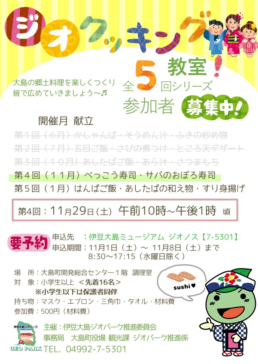 【11月29日】第4回ジオクッキング教室 参加者募集!