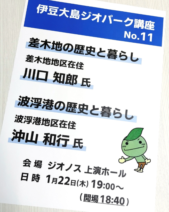 【1月22日】ジオパーク講座 No.11「差木地の歴史と暮らし/波浮港の歴史と暮らし」