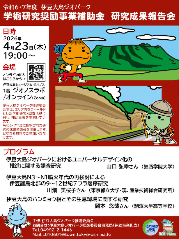 【4月23日】令和6・7年度伊豆大島ジオパーク学術研究奨励事業 研究成果報告会のご案内