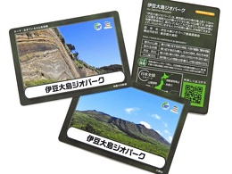伊豆大島ジオパークでは、当ジオパークにご来訪くださった方を対象として、「三原山」と「地層大切断面」の2種類のカードをご提供しています。以下の施設で配布していますので、ぜひお立ち寄りください!