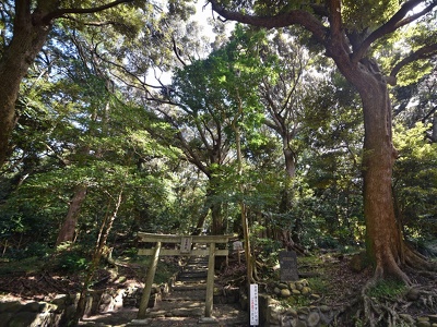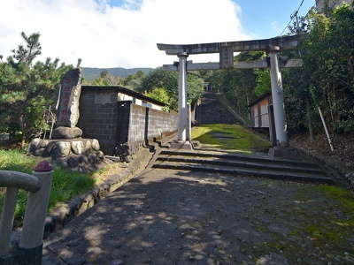 野増地区の北端にある大宮神社は、延喜式神名帳(927年にまとめられた全国神社一覧)に記載されている「阿治古(あじこ)神社」と比定されています。かつては野増集落南方のアジコと呼ばれる山中にあり、祭神は『三島大明神縁起』に登場する三島大明神の后の一人「羽分(はぶ)の大后」の長男・阿治古命(あじこのみこと)とされ、「阿治古神社」と称されていました。しかし、度重なる噴火の降灰被害により社殿の存続が困難だったため、室町時代に現社地に遷座したとされています。アジコの旧登山道を2kmほど登ったあたりに旧社殿の礎石(玉石)が残っていたそうです。