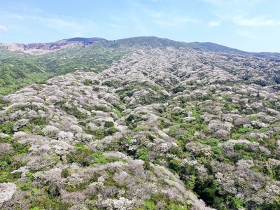 伊豆大島を名前の由来とするオオシマザクラは、サクラの野生種であり、伊豆諸島の準固有種です。かつて薪炭利用のため伐採された根株から萌芽再生した二次林で、島内では標高20m~550mの範囲に分布しています。