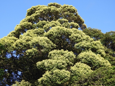 伊豆大島の遷移系列ではタブノキとともにスダジイ林が極相林(植物群落が移り変わりを経て最終的にたどりつく安定した森林)です。極相林が発達しているということは、長期間そこが火山噴火の影響を受けていない場所であることがわかります。