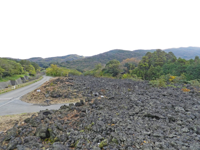 この溶岩流の痕跡を観察できるよう、後に駐車場や東屋が整備されました。しかし、2013年に発生した土砂災害でこの長沢にも土石流が流れ込んだことから植物が急速に繁茂し、数年で溶岩の大部分が植物に覆われました。現在は、長沢沿いの桜橋左岸付近で溶岩の断面や溶岩樹型を観察することができます(※写真(上)は土砂災害前の2012年11月撮影のもの)。