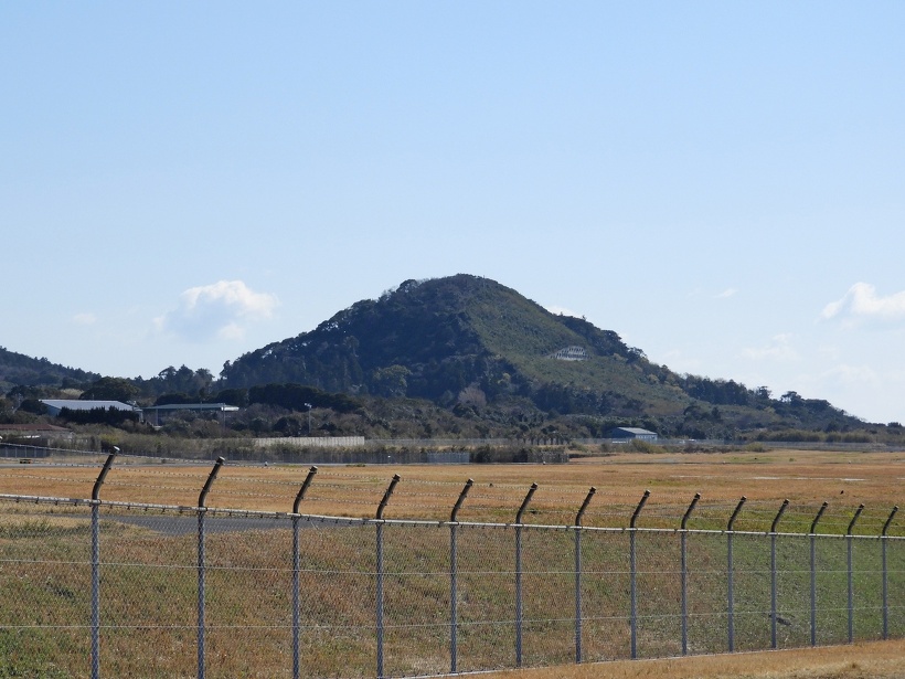 太平洋戦争当時は防衛のための重要拠点として、駐屯部隊によって防空壕や散兵壕が網の目のように掘られ、いまだに山腹にその跡を留めています。2000年には、空港滑走路の拡張工事により東側斜面が削られましたが、その後、植林が行われました。山頂に登るハイキングコースが整備されており、頂上の展望台からは島の北西部や伊豆半島、富士山が望めます。