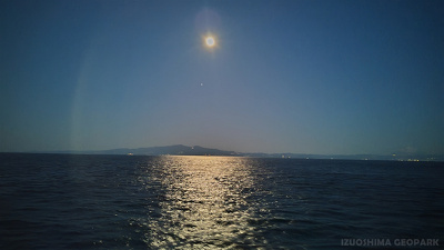 出発は10月29日(日) 22時。竹芝客船ターミナル発の大型船に乗船し、煌めく東京湾の夜景をお楽しみいただいた後、船室で就寝。翌朝目覚めると、大きな満月が伊豆半島や富士山をくっきりと浮かび上がらせていました・・・