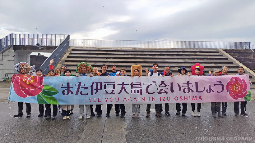 日本ジオパーク全国大会から続いた怒涛のツアーも無事終了。参加者の皆様、大変おつかれさまでした! 我々、伊豆大島ジオパークのガイド・事務局一同も、とても楽しい時間を共有させていただきました。ありがとうございます。日本ジオパークネットワーク仲間として、今後とも密に交流していけたらと思います。